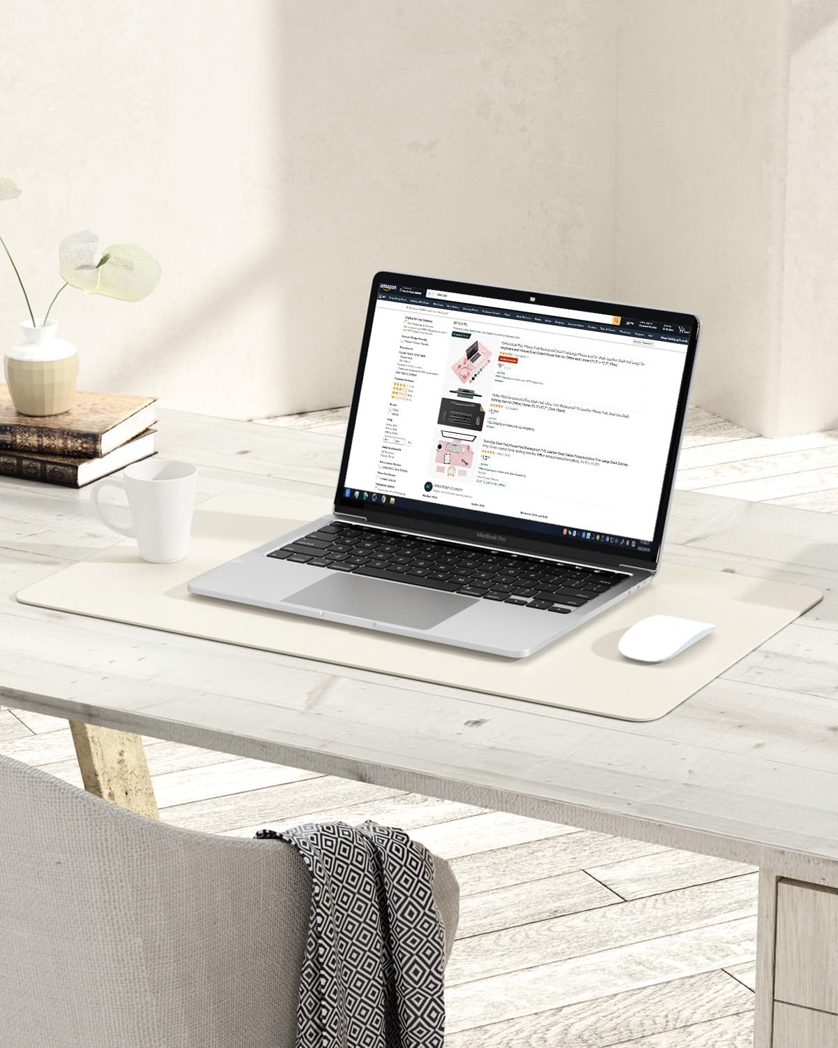 YSAGi Non-Slip Leather Desk Pad, Desk Matt for Desktop, Waterproof Laptop Computer Keyboard Mat, Table Protector Blotter Mat, Large Mouse Pad for Office/Work/Home/Decor(Cream, 23.6" x 13.7")