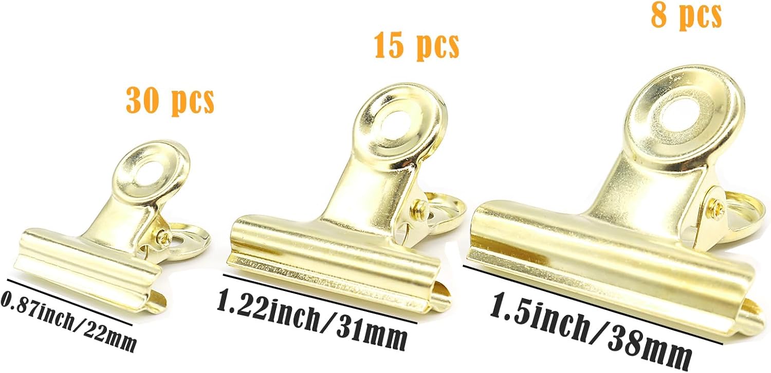 YCVIORING Gold Bulldog Binder Paper Clips, Assorted Sizes Set, Paper Clamps for School, Office and Home Kitchen (53 Pack)