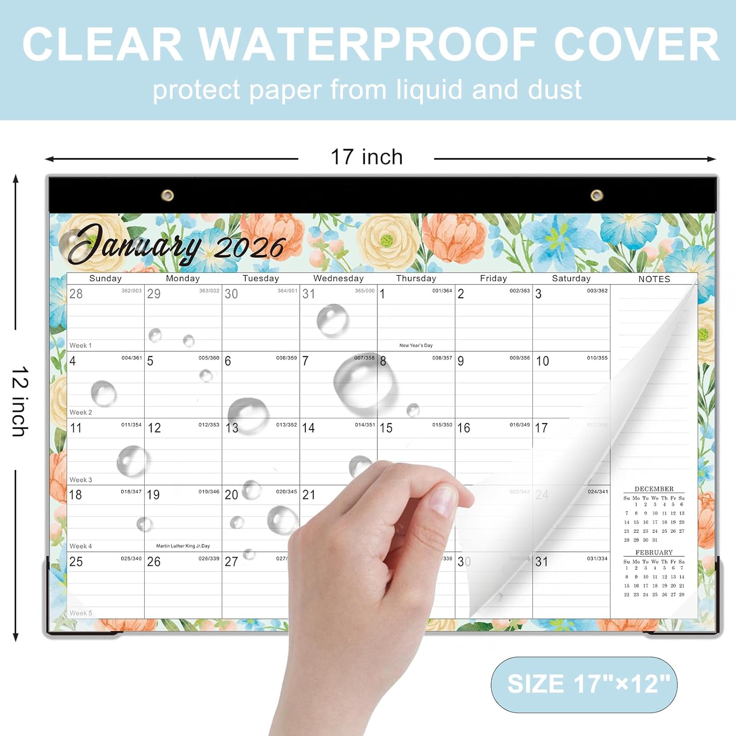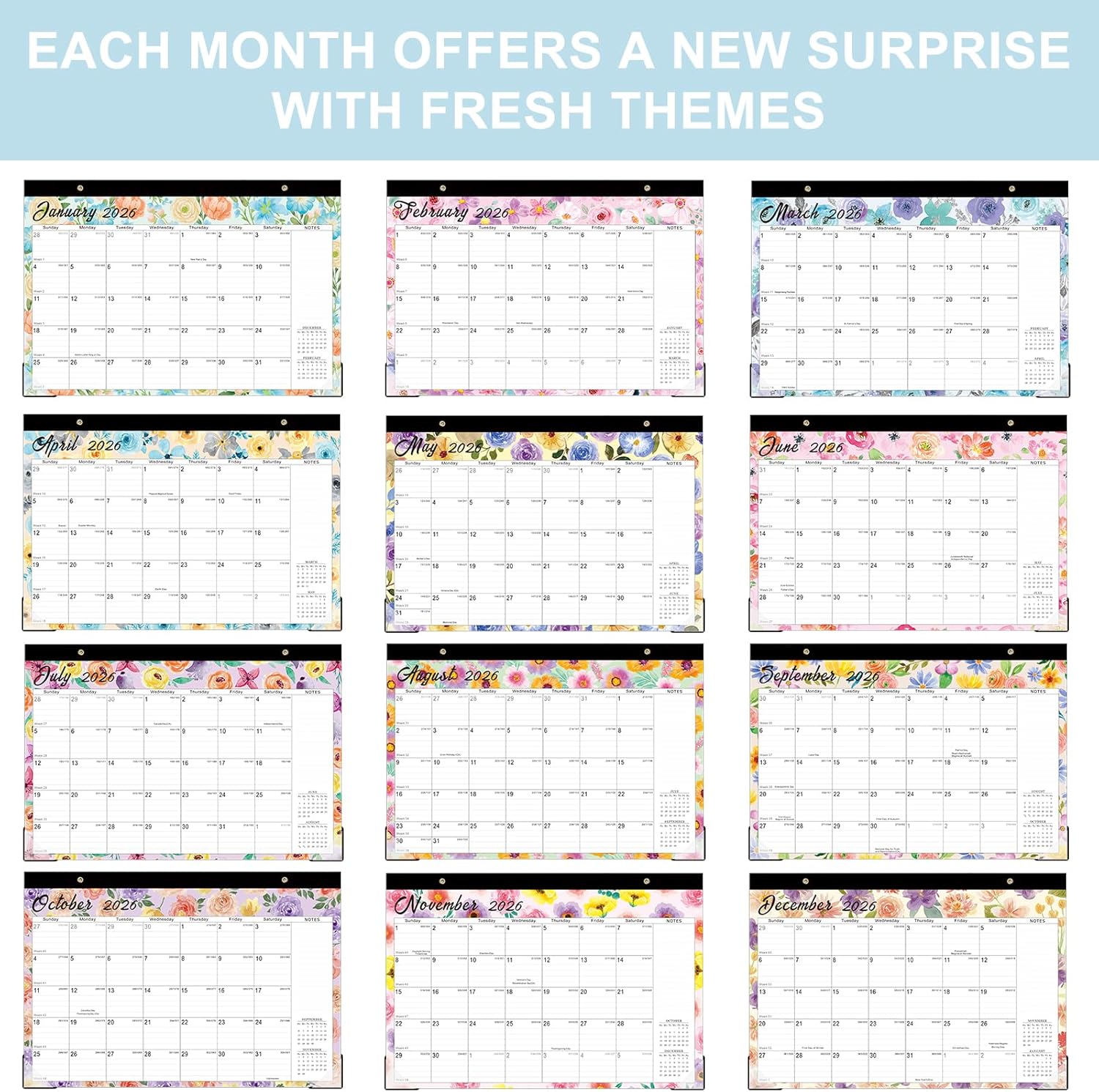 - DESK FORMAT: Standard desk calendar 2026-2027 layout with ample writing space and clear date visibility for easy daily planning and scheduling. 17 X 12 inches. Measures approximately 17 inches wide by 12 inches tall when displayed, perfect for standard desk spaces