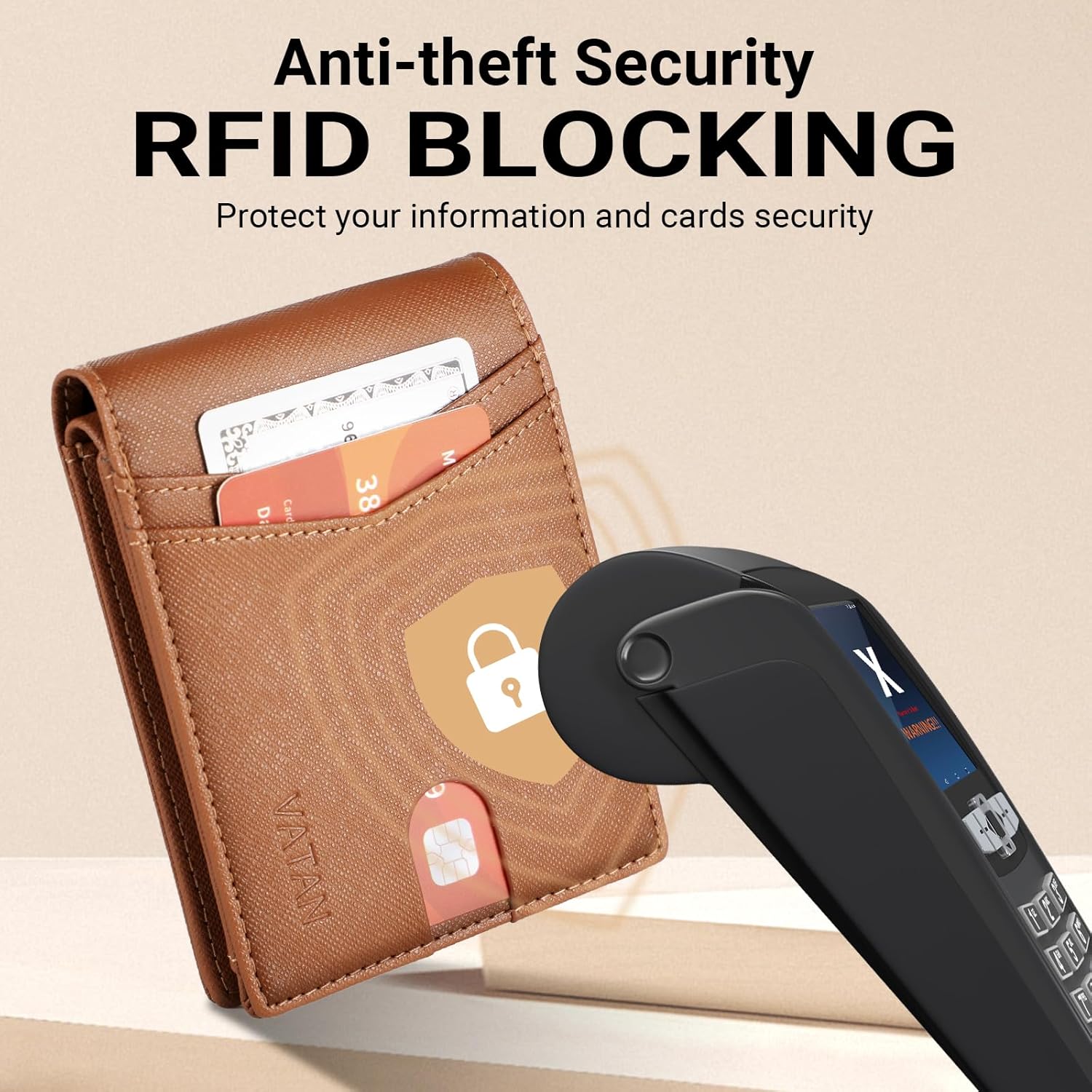 VATAN Wallet for Men, Mens Minimalist Wallet Credit Card Holder, Slim Leather Rfid 2 ID Window Large Capacity With Gift Box (Cross Grain Brown)