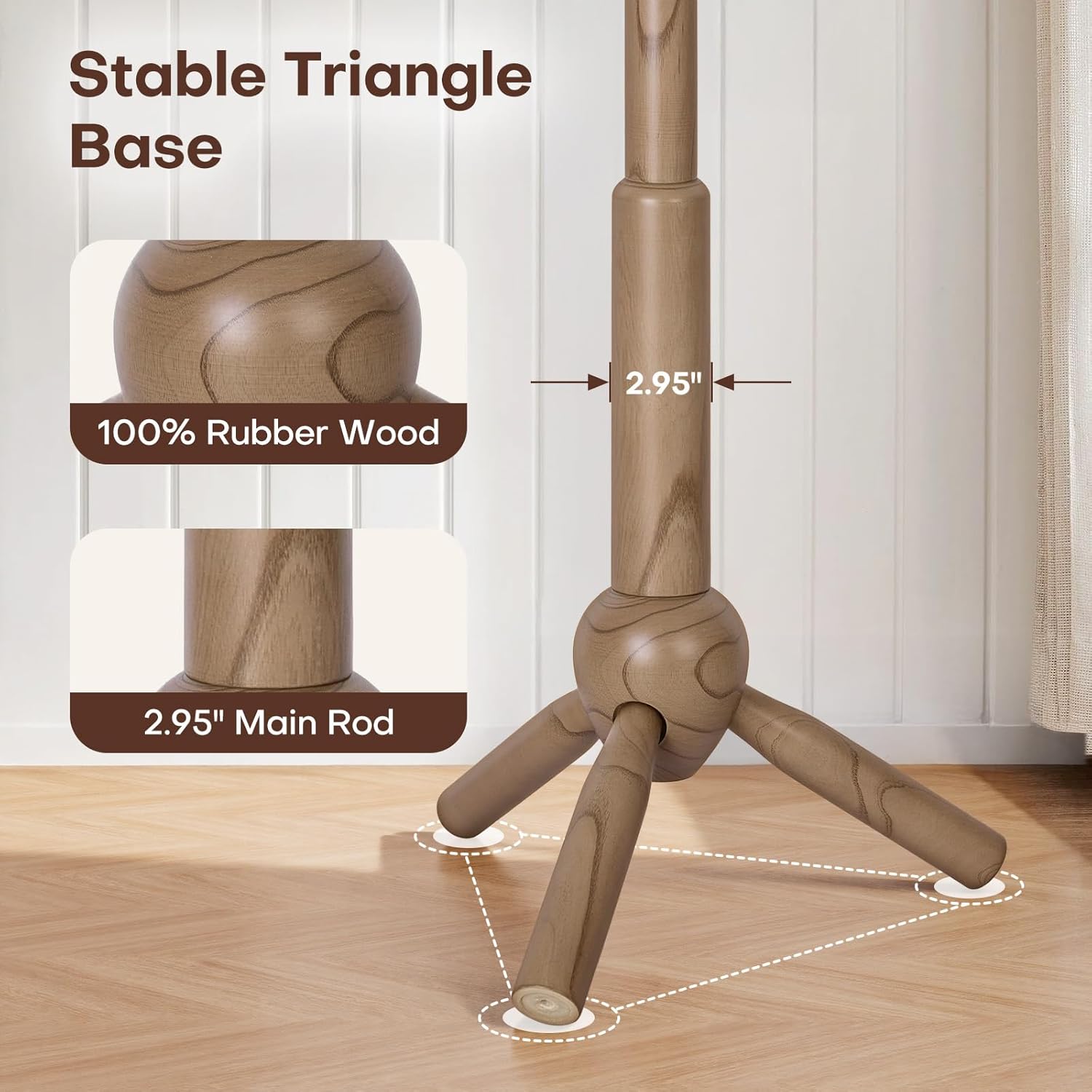 - 【100% SOLID RUBBERWOOD】Built from premium kiln-dried rubberwood this coat tree freestanding showcases clear natural grain, splinter-free edges for comfort feel every time you hang your coat. While walnut-colored friendly coating enhances both protection and aesthetics