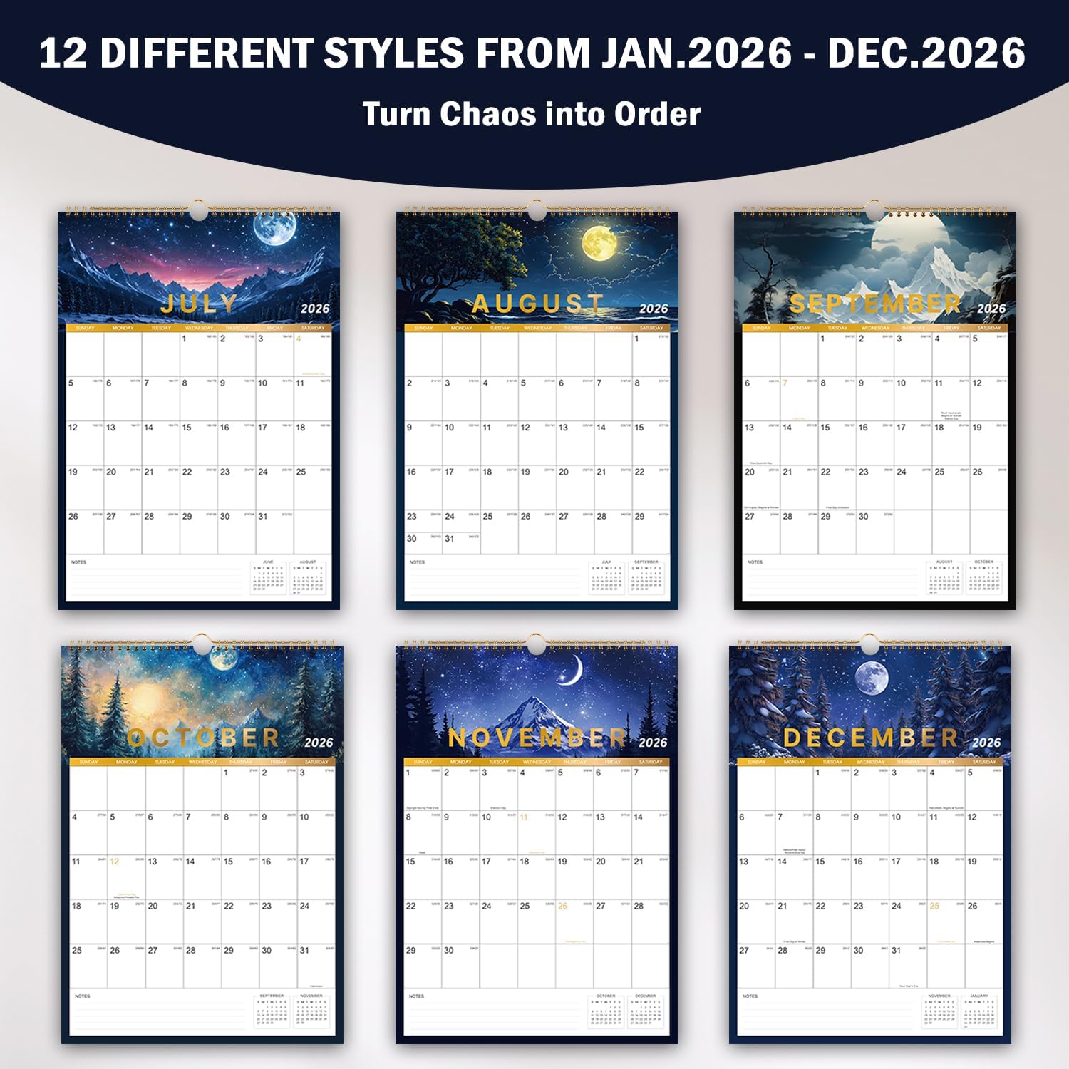 - 🌲 2026 WALL CALENDAR - This 2026 calendar covers 12 months from January 2026 to December 2026, featuring 12 different patterns, beautiful patterns also be a decoration in your home, the size of this hanging calendar 2026 is 12" x 17", it will accompany you whole year, make your life organization.