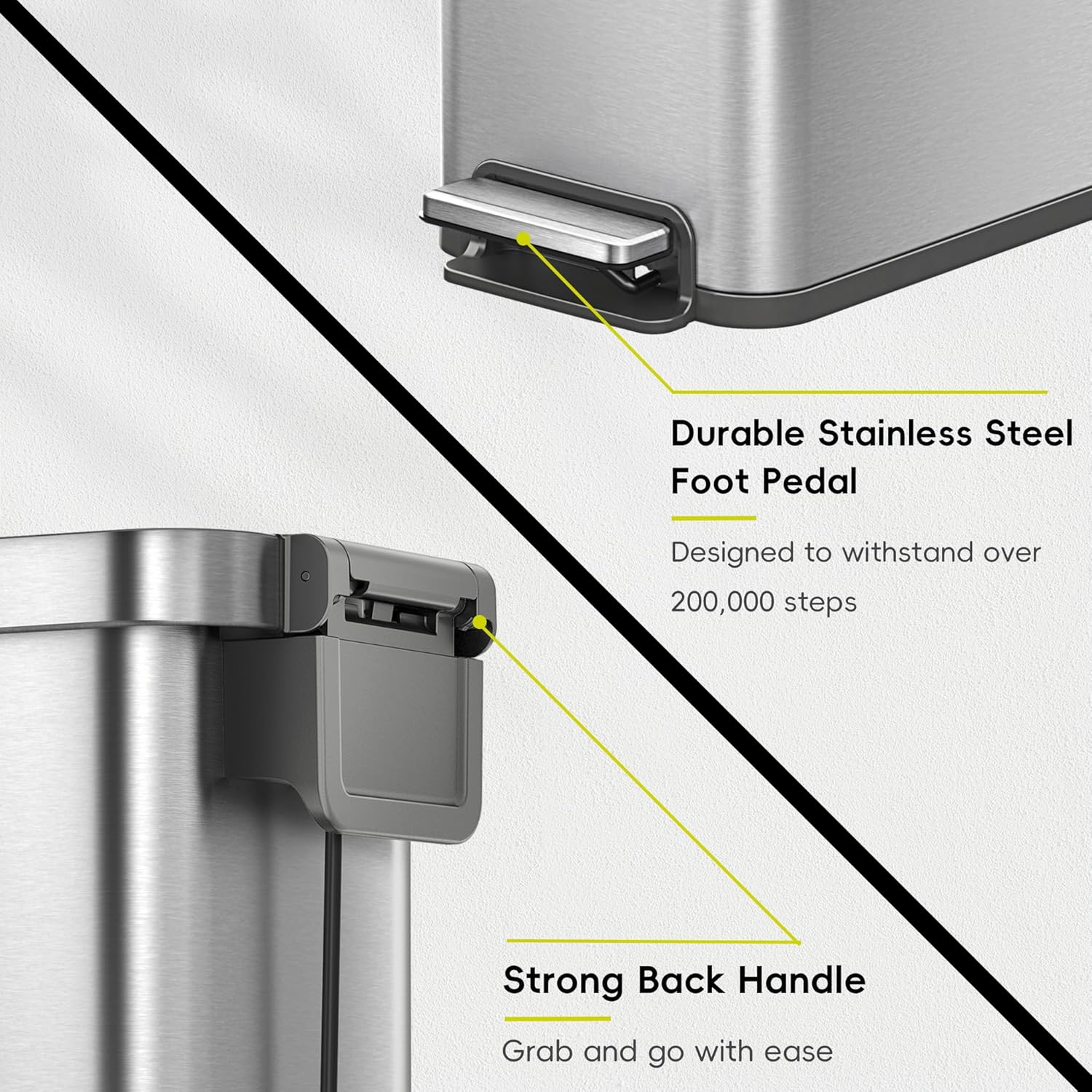 - Durable Pedal Design - The stainless steel foot pedal offers smooth, hands-free operation and is engineered to withstand over 200,000 steps — built for lasting performance in busy households