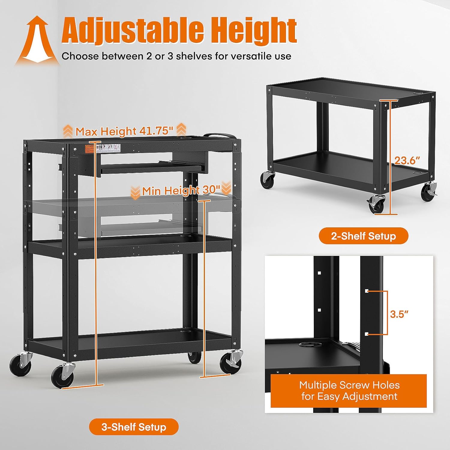 - Versatile for Multiple Environments:Perfect for use as a rolling computer cart, AV cart, workshop trolley, or mobile supply station—adaptable to offices, classrooms, labs, and garages.