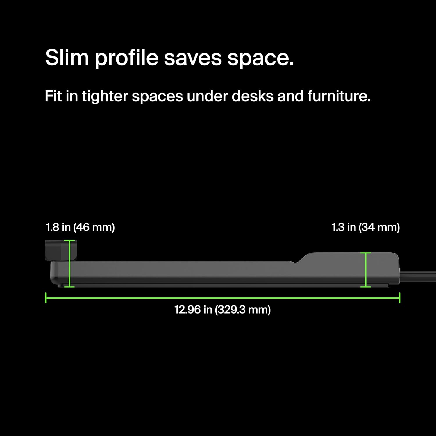 - COMPACT & HEAVY-DUTY FOR LASTING USE ANYWHERE: Widely spaced outlets give ample area to fit big plugs and chargerS. Its slender design is ideal for home office, workstations, and more. The 2.4M cord has a 3-prong angle plug convenient for tight spaces.