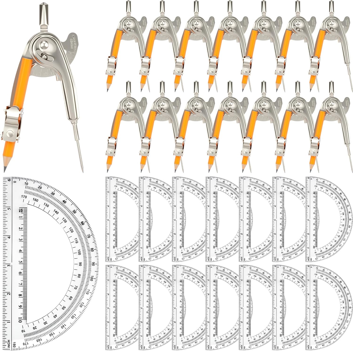 - Value Compass Geometry Tool Set: you will receive 30 pack geometry compass set, including 15 pieces of math compass with pencils and 15 pieces of geometric protractors, enough to meet your different work or study needs, and share with family or friends