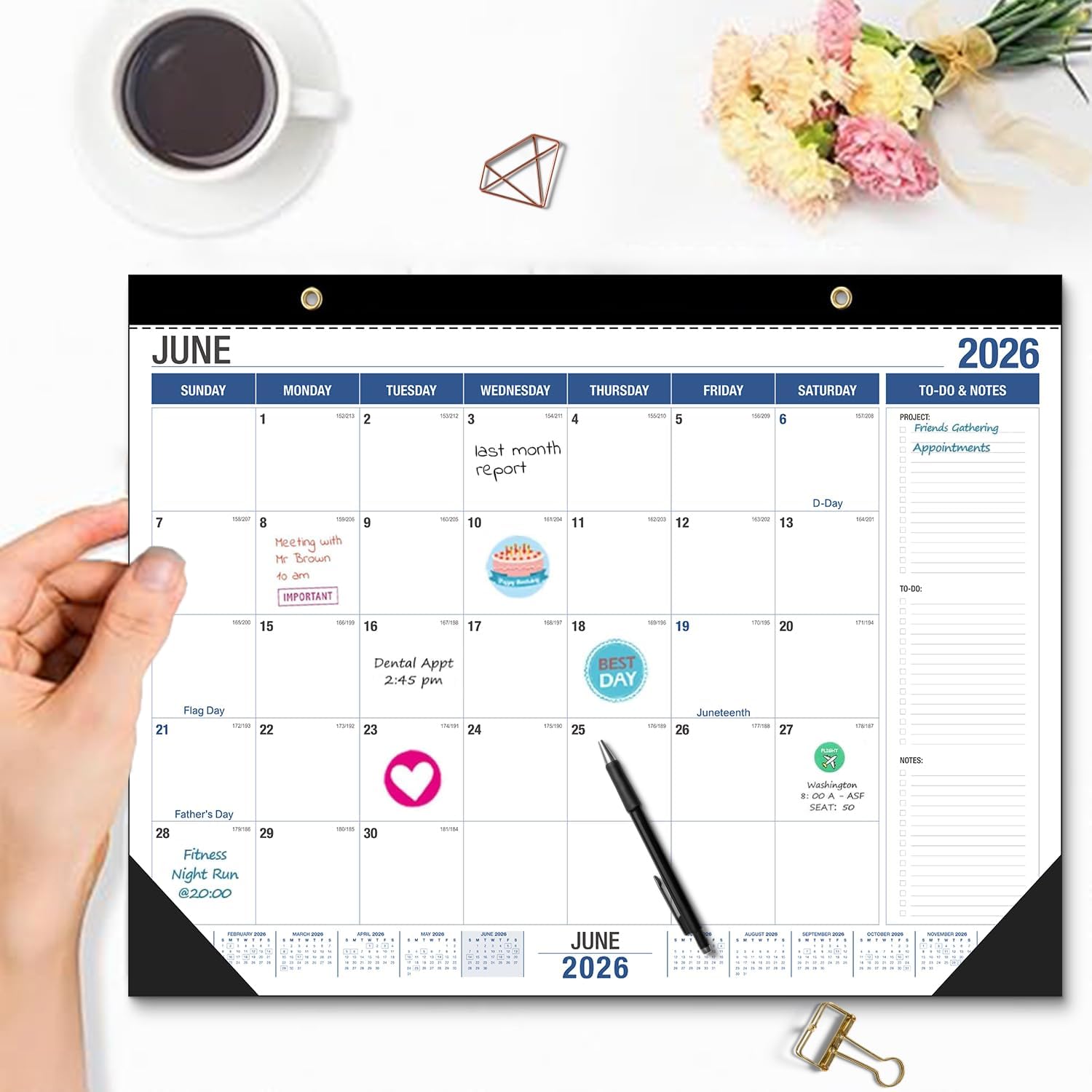 Desk Calendar2026-2027, With 2 sticker, 18 Month Calendar Running to June 2027-22" x 17" Desktop/Wall Monthly Calendar for Homeschool or Office