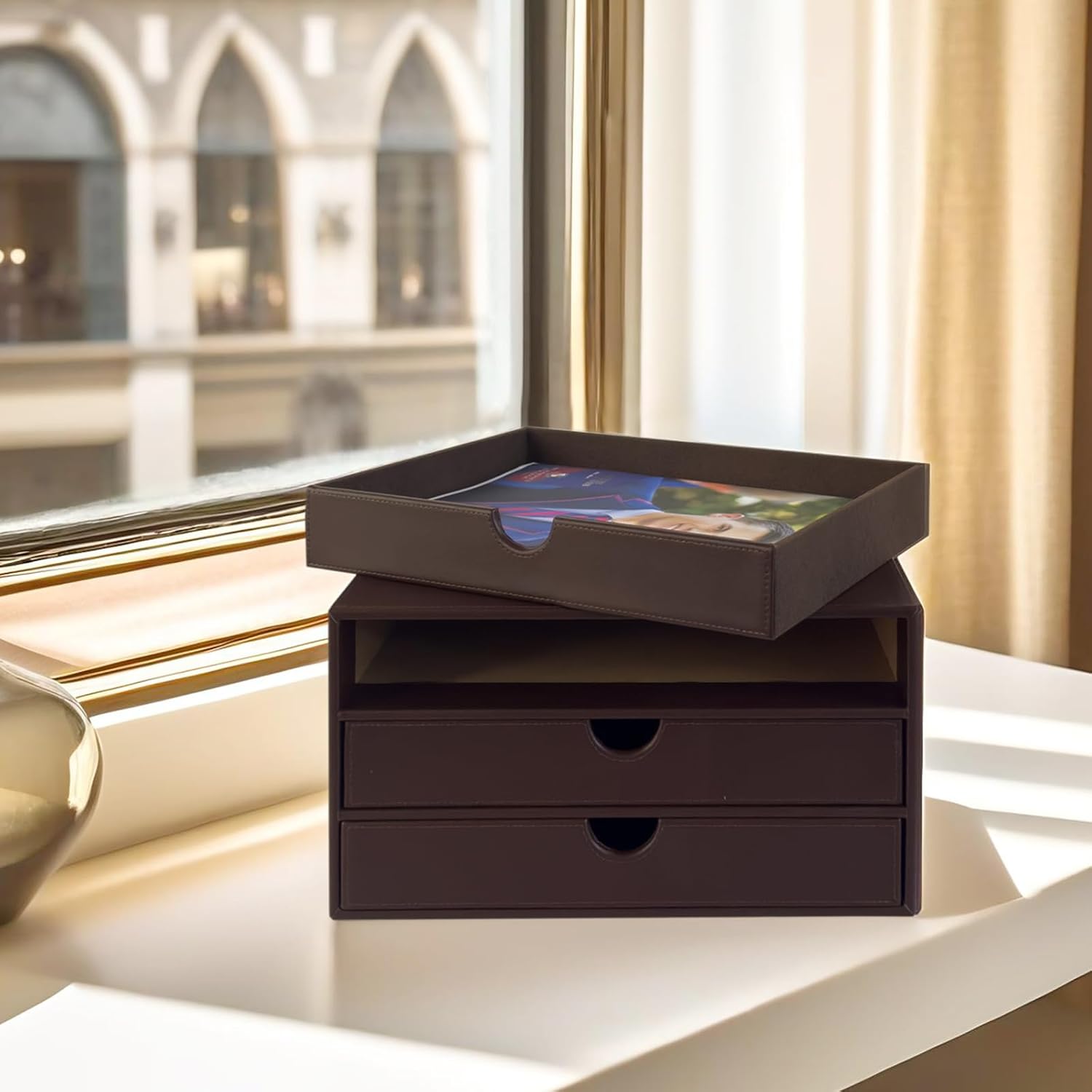 - 🗄️ Aesthetically Pleasing: Say goodbye to cheap plastic document organizer. Made of high density wooden board and covered with selected faux leather exterior and non-woven lining interior, this one could withstand frequent use, making it a long-lasting and cost-effective organizational solution. A must-have accessory for anyone who wants to add a touch of personality to your desk organization