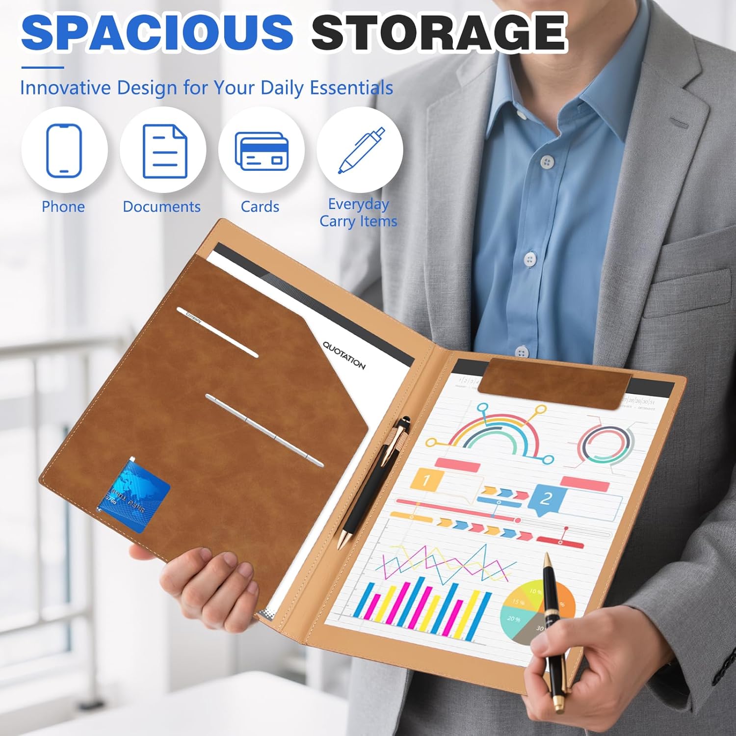 - 【Efficient Portfolio】This premium PU leather portfolio boasts a polished, professional appearance—leaving a lasting impression in business meetings, interviews, and daily tasks. It elevates organization, boosts productivity, and ensures you’re always prepared while on the move.