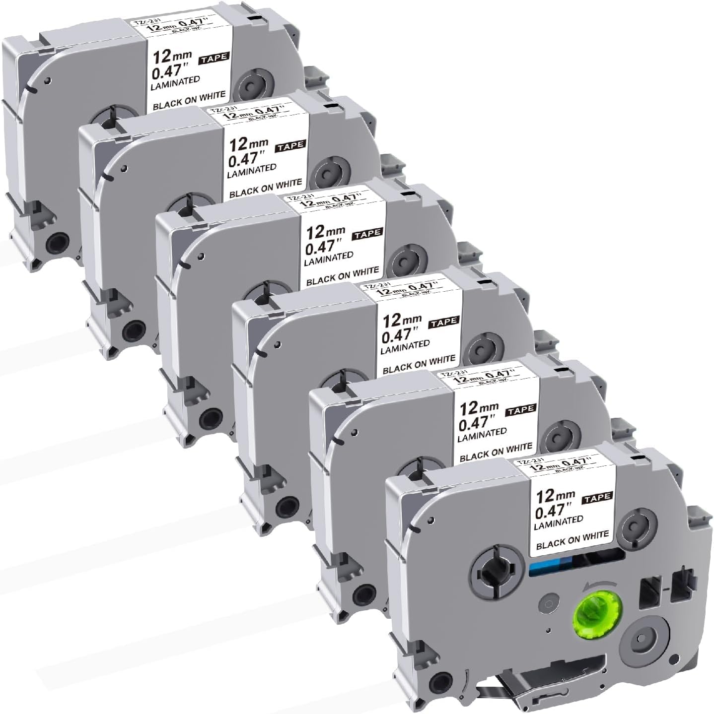 6Pack Label Maker Tape Compatible with Brother PTouch TZe-231 Tape, ½” 0.47”x 26.2 ft Laminated Black on White, for PT-D210, PT-H110, PT-D220, PT-D410, PT-D600