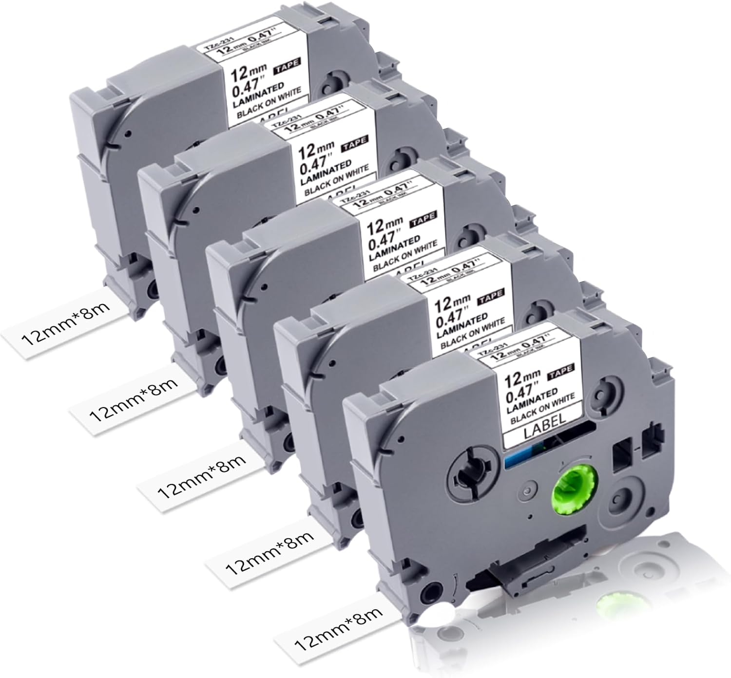 - Items: 5 packs compatible with Brother label maker refills TZe-231 TZ-231 black on white, 12mm(0.47inch) x 8m(26.2feet) of each pack.